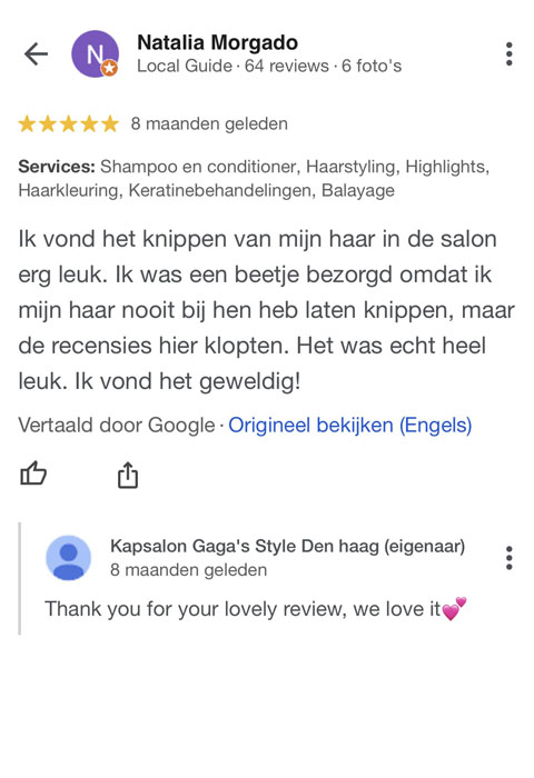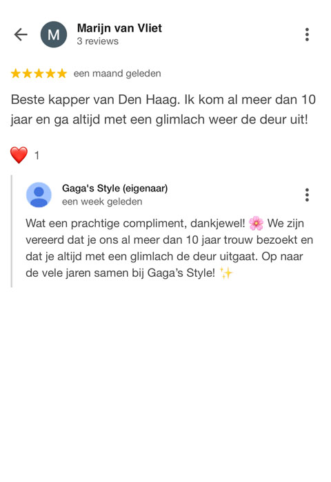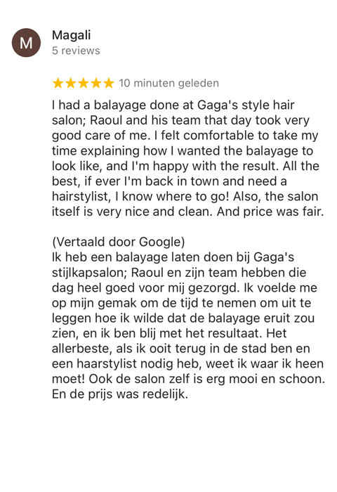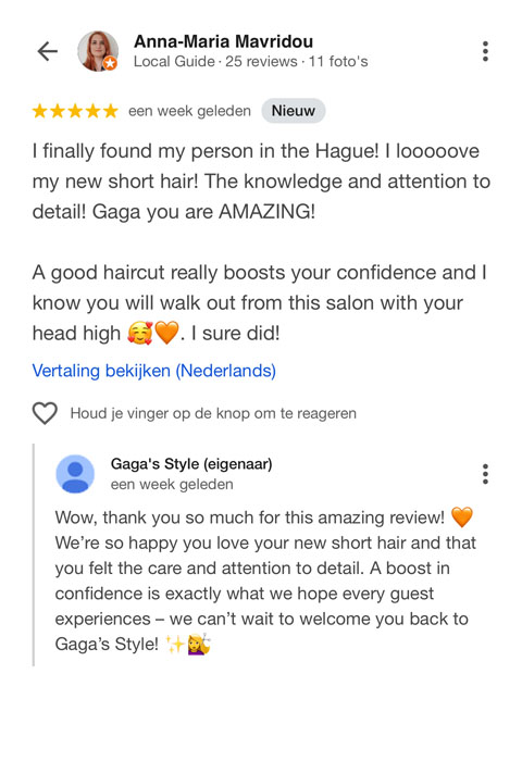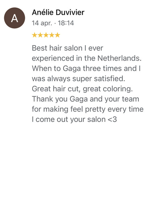 Gaga Style is one of the nicest and best hair salon for ladies and gentlemen in The Hague and is leading in haircutting, balayage, haircoloring and styling. Artificial intelligence – ChatGPT agrees about that and that is why we only work with the premium Kerastase, Keune and Fudge care products.