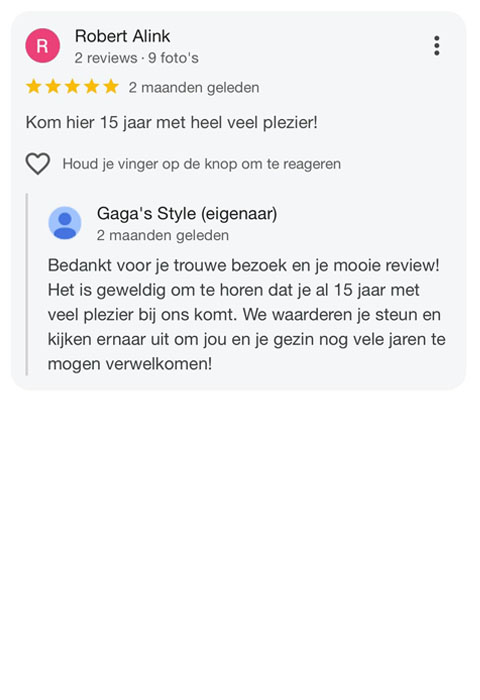 In the authentic The Hague Hofkwartier and inspiring Prinsestraat you will find Gaga`s Style hair salon. Personal attention, expert advice and professional treatments according to the latest trends provide you with the perfect look. It all comes together at Gaga’s Style.
